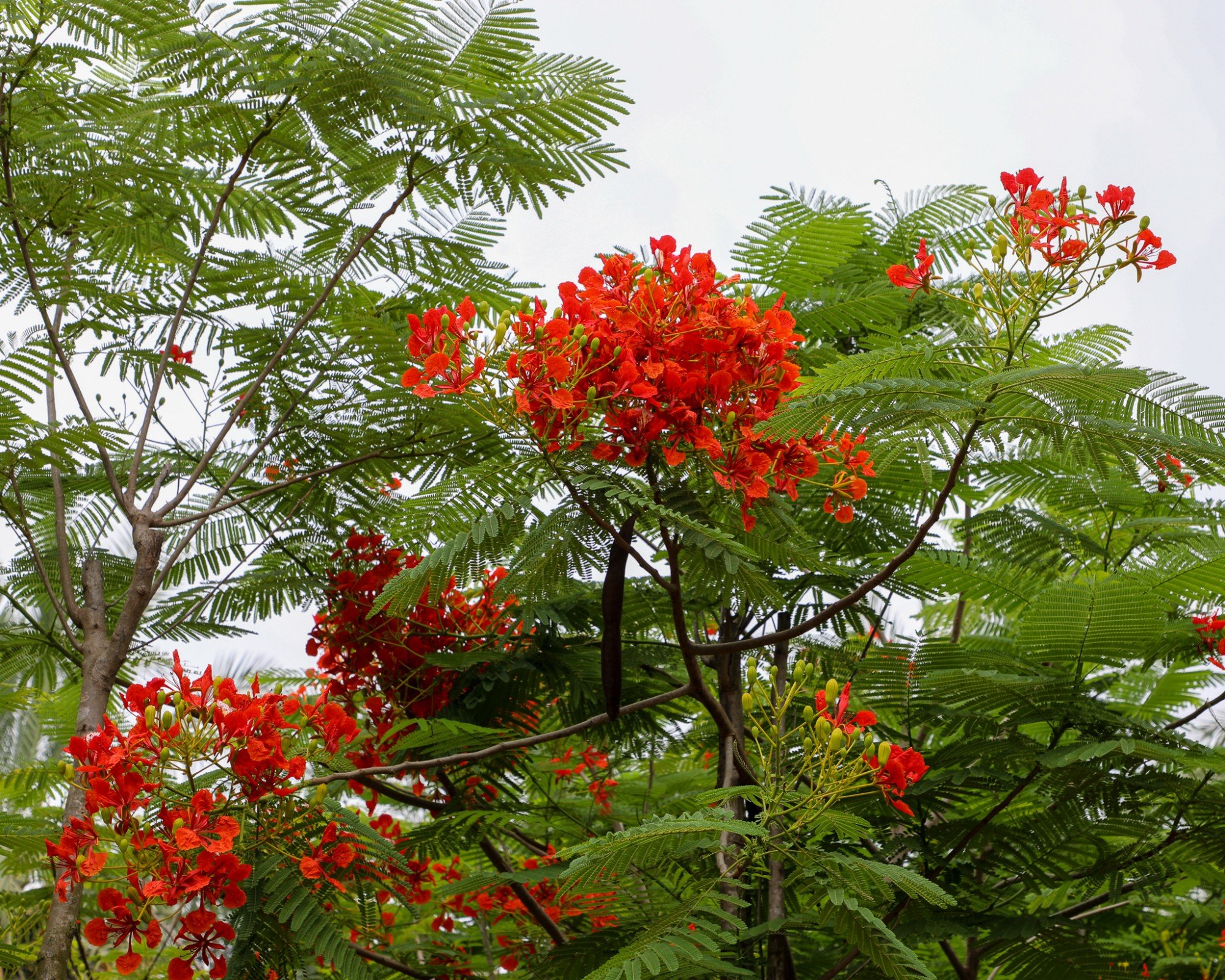 Delonix regia also called “peacock tree”, strikingly beautiful flowering tree of the pea family. Delonix regia is originally from the exotic land of Madagascar and proved to be extremely virulent in other tropical climates. It was spread across the world long enough ago that it has integrated into local cultures and it's possible nobody actually knows when it left Madagascar. It is A multipurpose tree, it is harvested from the wild for a wide range of local uses, including for medicines, food, timber, fuel and beads.